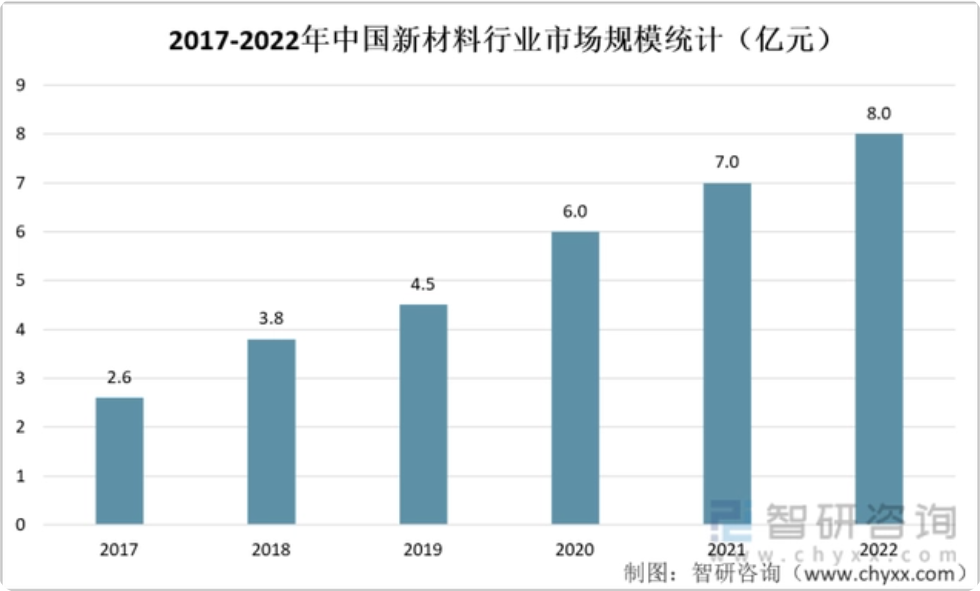 2017-2022年中国新材料行业市场规模统计