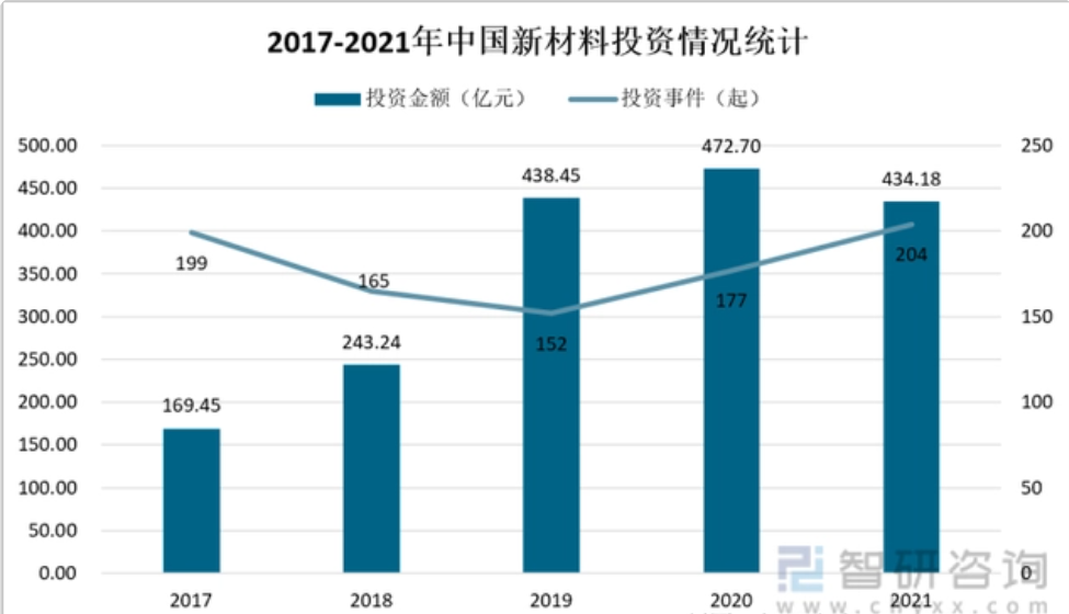 随着前沿技术的快速发展,新材料颇受市场关注,赛道火热,投融资规模快速增长。数据显示,2021年我国新材料投资数量共204起,同比增长15.3%,投资金额达434.18亿元。