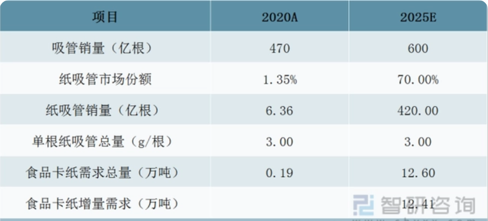 纸吸管食品卡纸增量需求测算表
