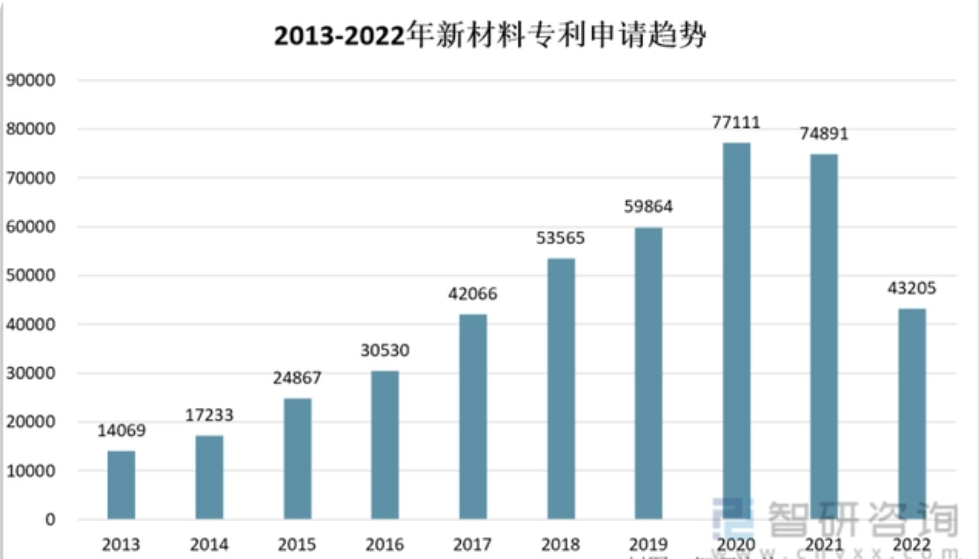 2013-2022年中国新材料专利申请量