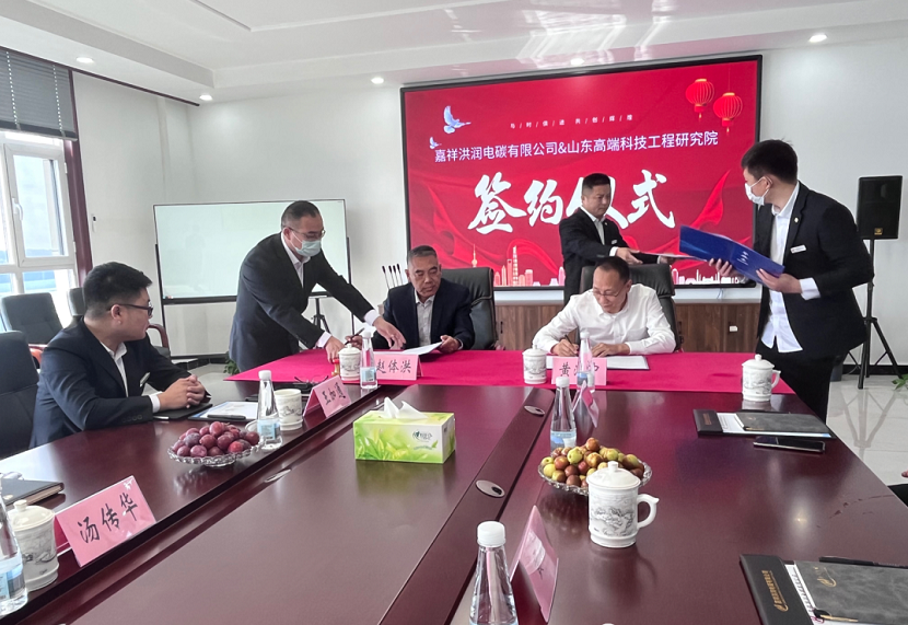 2022年10月13日上午,山东高端科技工程研究院和嘉祥洪润电碳有限公司,在嘉祥碳碳产业园举行技术签约仪式,并为其共同组建的“山东高端科技工程研究院洪润分院”挂牌。
