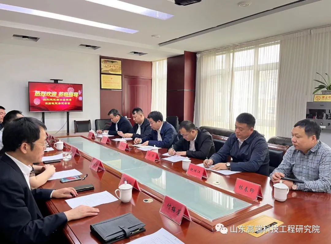 2023年4月13日,黑龙江省伊春市南岔县人民政府县长段红波,副县长司洋,发展和改革局局长赵汝江,办公室主任杨天,伊春林宝药业集团董事长林春和、林春印一行莅临山东高端科技工程研究院对接考察项目。山东高端科技工程研究院院长黄治中及相关业务部门工作人员陪同座谈。