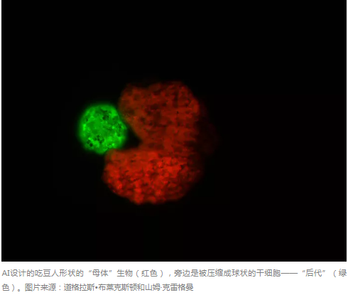 研究人员发现,如果将足够多的异种机器人放置在培养皿中彼此靠近,它们会聚集并开始将其他漂浮在溶液中的单个干细胞堆叠起来。于是,多达数百个干细胞在它们如同吃豆人形状的“嘴”中组装了“婴儿”异种机器人。几天后,这些“婴儿”就会变成外观和动作都跟母体一样的新异种机器人。然后这些新的Xenobots可再次出去寻找细胞,并建立自己的“副本”,就这样周而复始,不断复制。