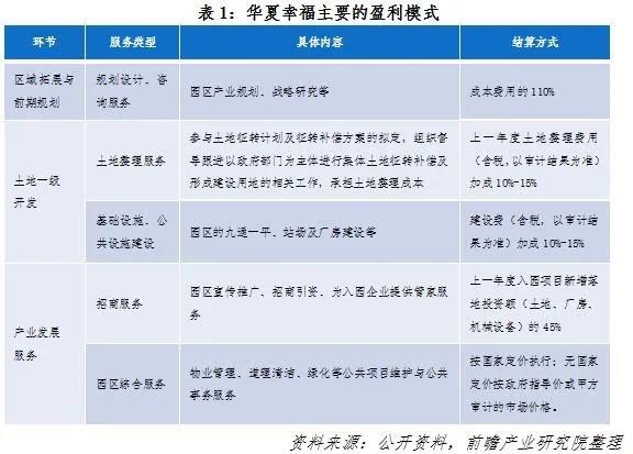 主要盈利模式: 一是通过垫付园区前期开发、基础设施建设费,获得政府10%~15%的利息收入;二是园区招商引资返还收入,即园区新增固定资产投资额或新增财政收入的45%;三是园区配套地产开发收入;四是园区土地升值收益。
